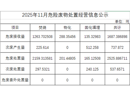 2025年11月危險廢物處置經營信息公示