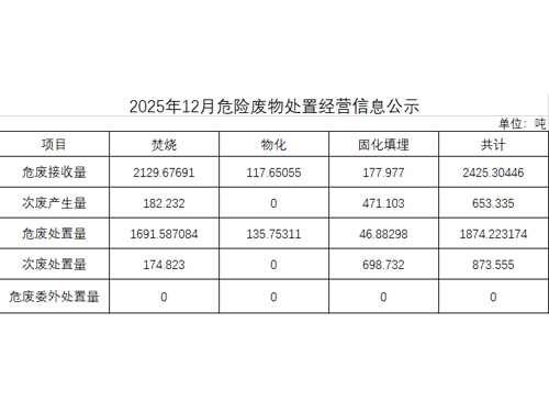 2025年12月危險廢物處置經營信息公示
