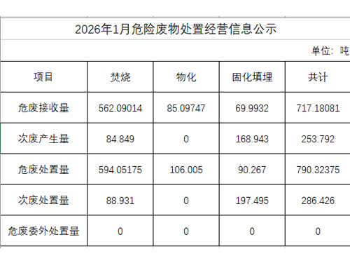 2026年1月危險廢物處置經營信息公示