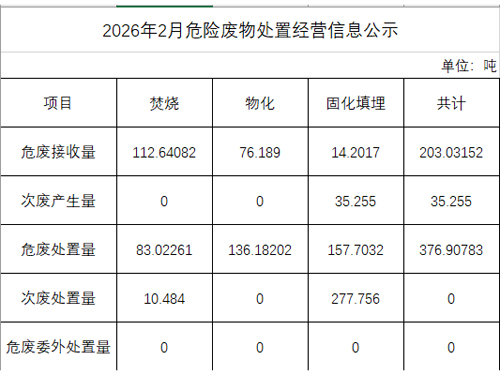 2026年2月危險廢物處置經營信息公示
