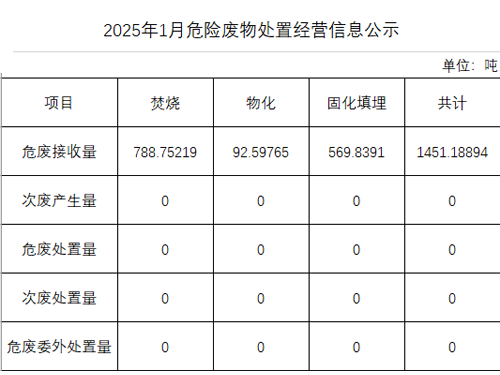 2025年一月危險(xiǎn)廢物處置經(jīng)營(yíng)信息公示